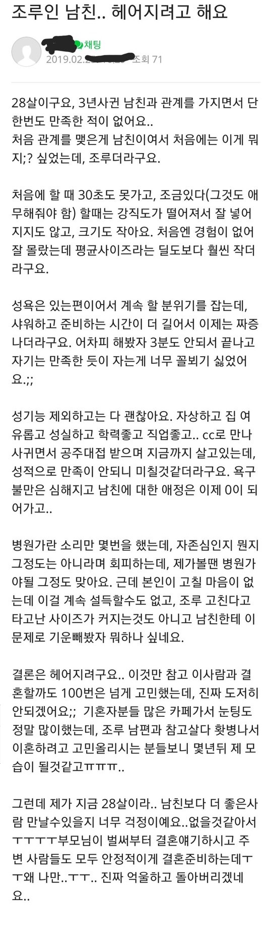 조루인 남자친구와 헤어질래요~~~ 나쁜뇬~~